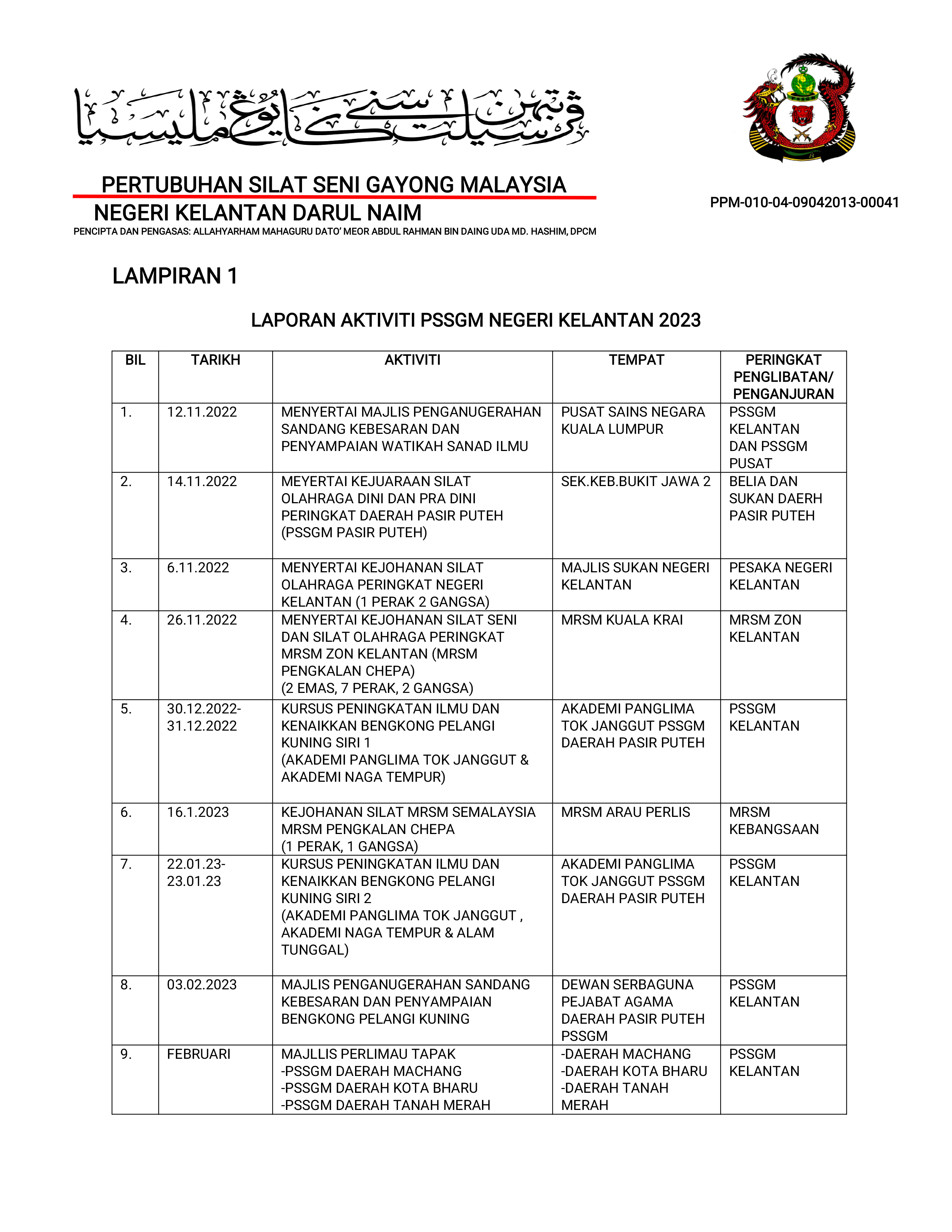 PROGRAM DAN AKTIVITI TAHUNAN PSSGM NEGERI KELANTAN